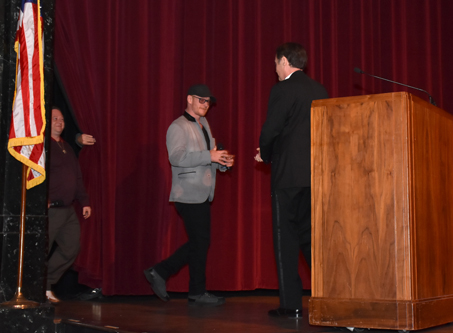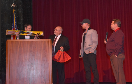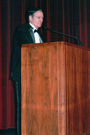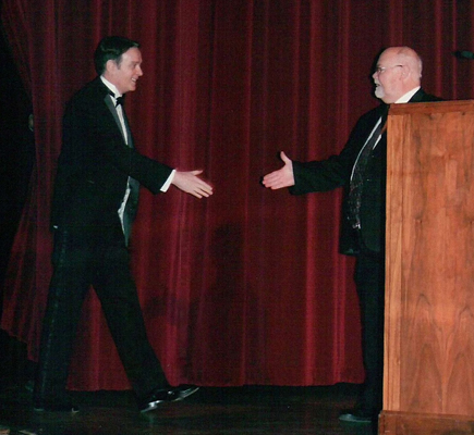 Tim Neal introduces Bruce Crawford to the stage.