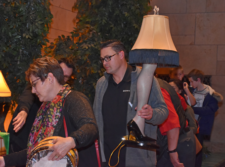 The proud owner of a leg lamp waits to get it signed.
