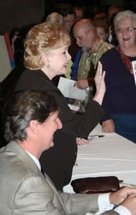 Debbie greets the crowd for autographs. |